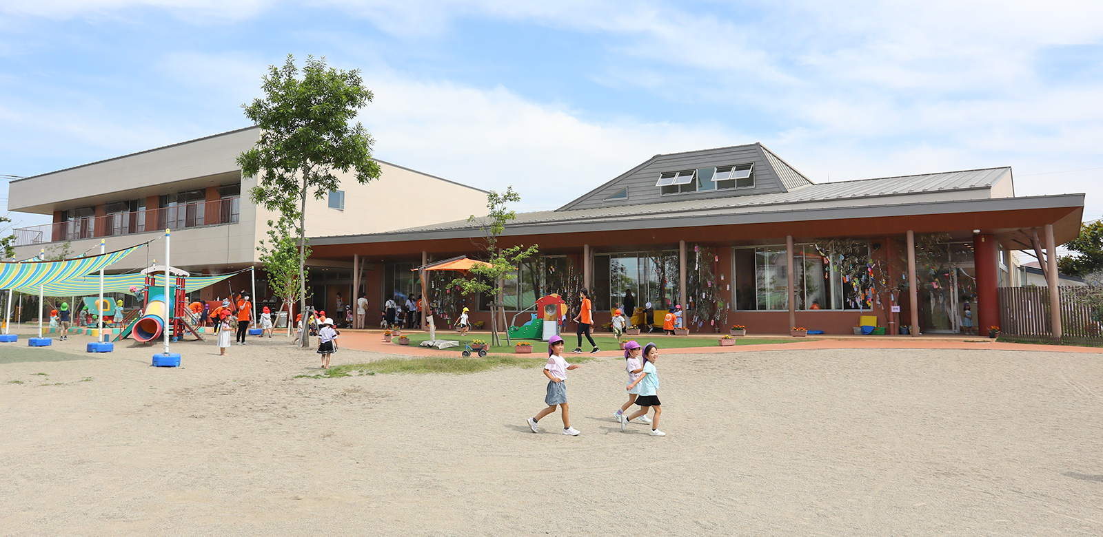 職員室は園舎アプローチと園庭を一望できる配置とし、全ての保育室に採光と換気を確保することで、快適で安心安全な園舎環境を実現しました。
